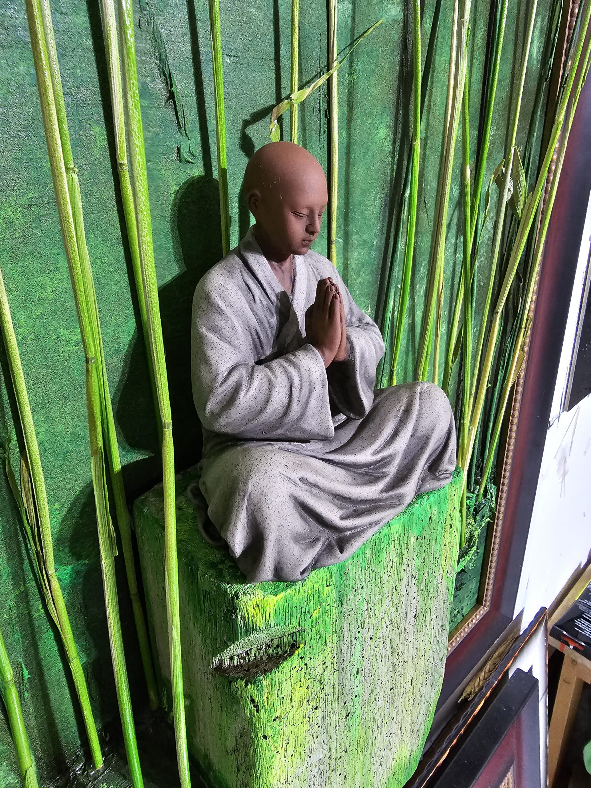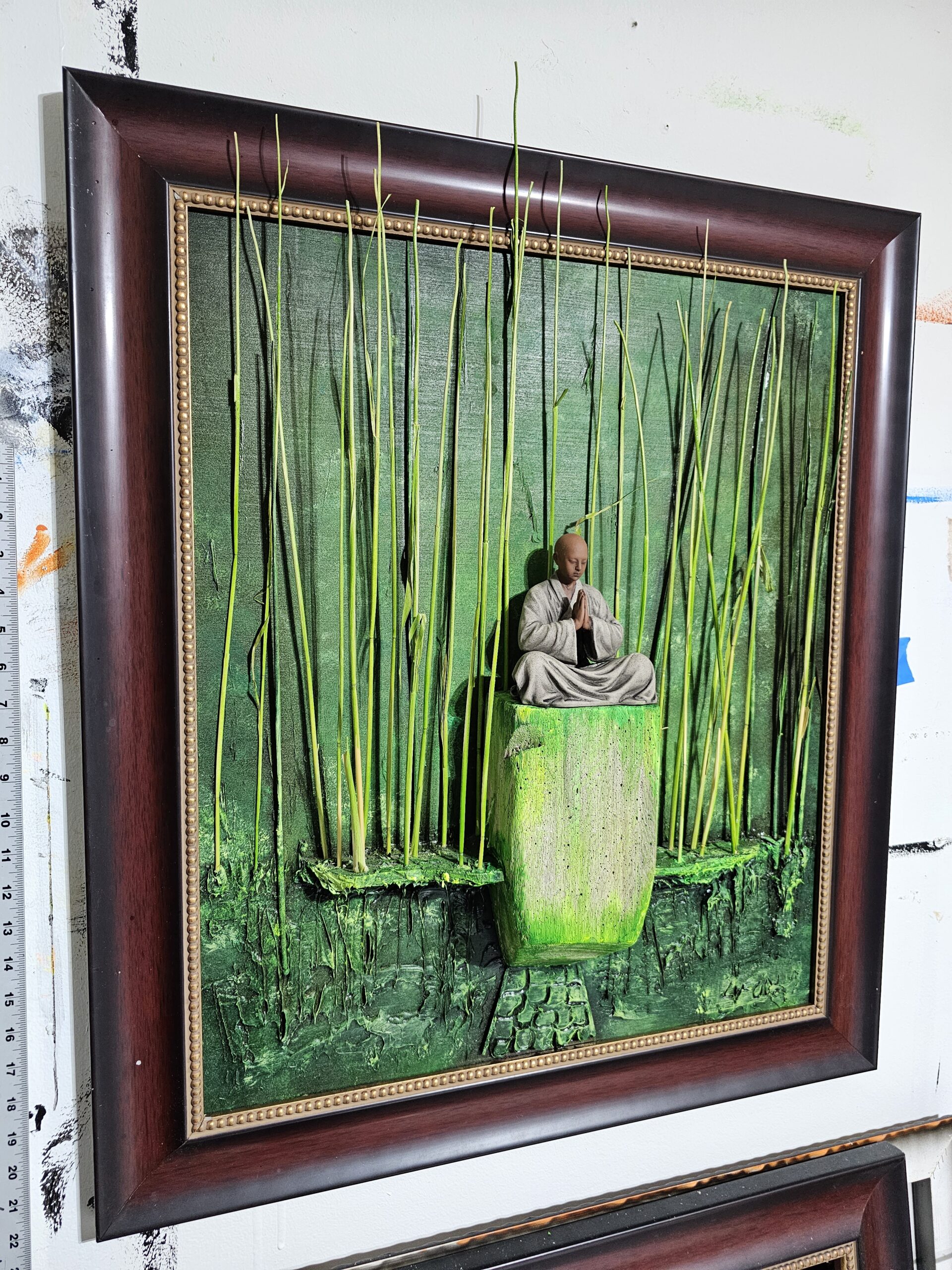 on wood mixed media, used plaster, metal, bamboo and fossilized wood , 32x28x4