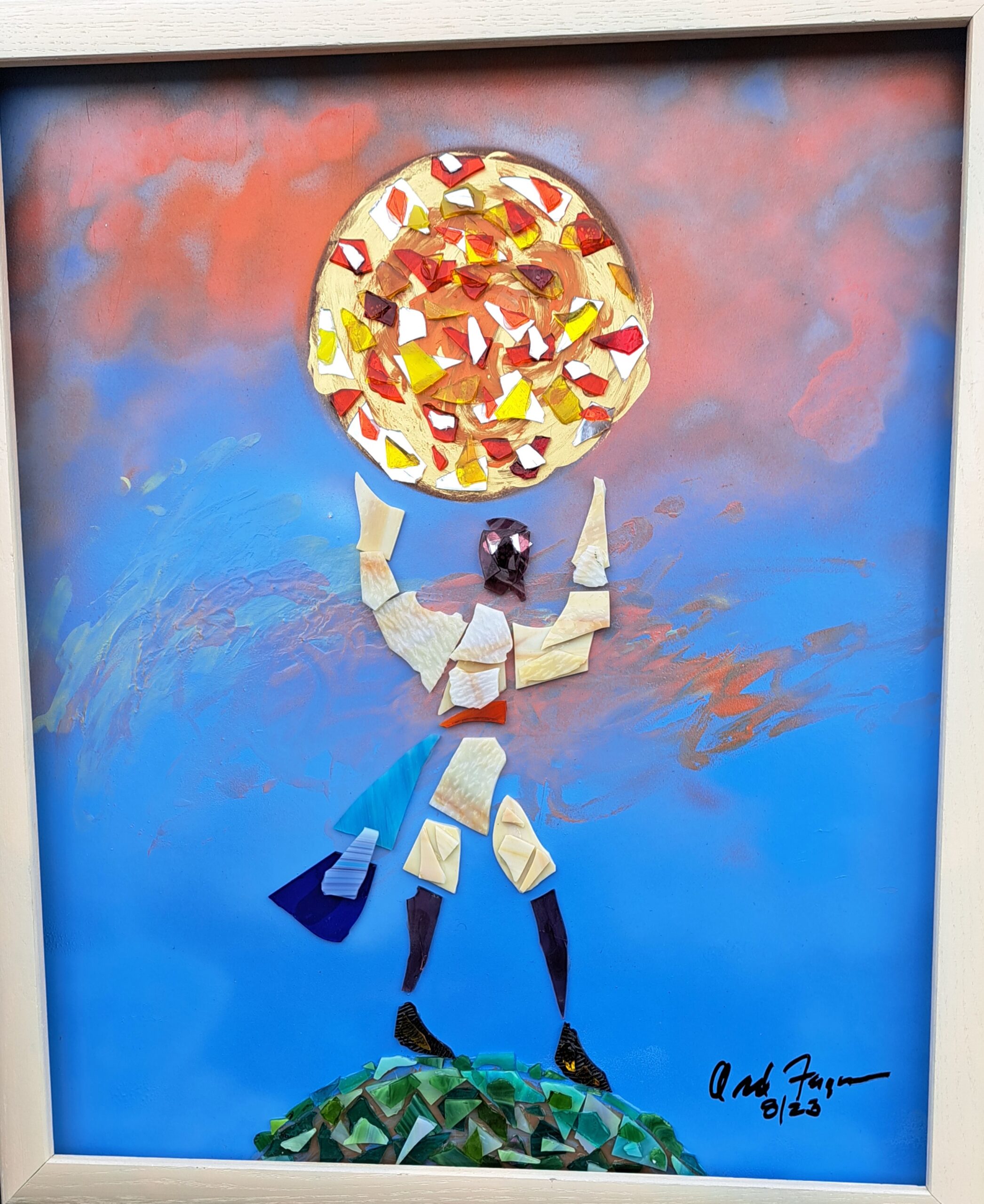 Broken stain glass, comb pain,thin plywood , 24″×24″