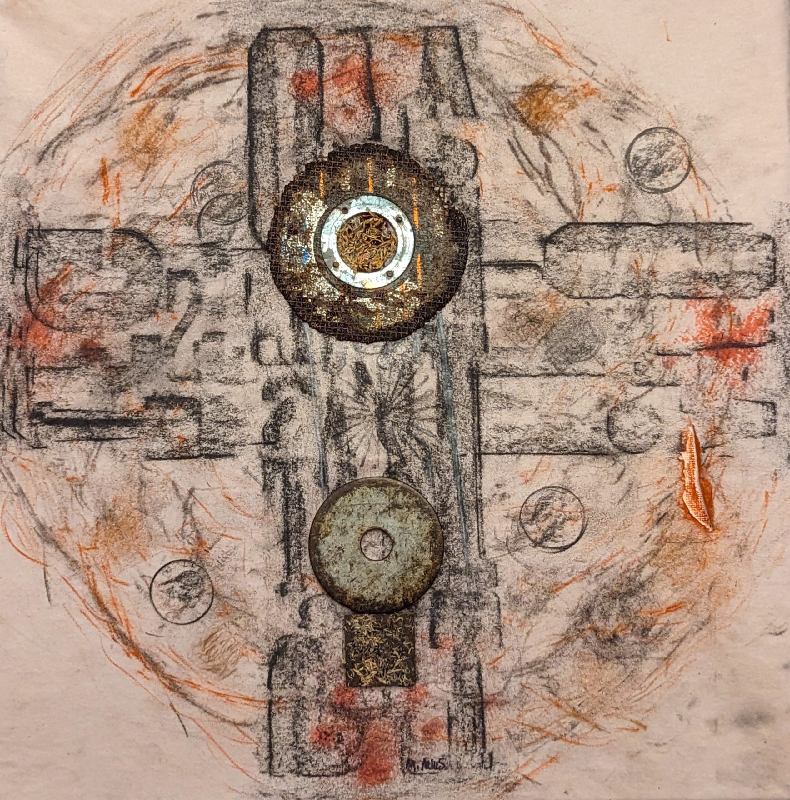 Mixed-Media Collage on Paper on Canvas , 14.5×14.5 (framed)